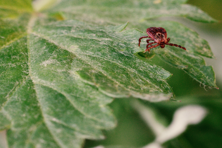 Quelle: via Pfizer | Pressemitteilung - Titel: Die Zecke "Gemeiner Holzbock" auf einem Blatt